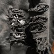 袖を激しくカットしたようなレーザー加工でクラッシュさせ、1枚でもレイヤーでもアクセントの高いスウェットカットソーです。