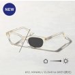滑らかで厚みのある曲線を描いたフレームラインと、細身なウェリントン型レンズシェイプの組み合わせが特徴的なモデル。