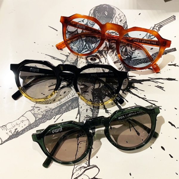 この様な型は、顔の中心に眼鏡が寄ってしまいがち(顔幅広めの日本人は特に)。そうならない様、デザイナーがレンズ/ブリッジ/ヨロイ、それぞれに少しずつ幅を出しながら、絶妙のバランスでひたすら調整し、設計したモデル。