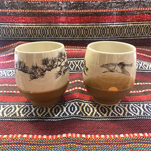 {九九谷} 鷺 湯呑み 2個セット