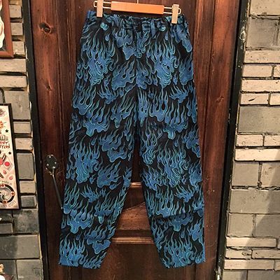 {NO MAD NUMSKULL} ORIGINAL PATTERN LONG PANTS / "FIRE" / BLACK×BLUE