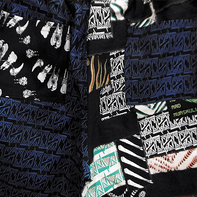 アシンメトリーで片側半分がパッチワークで縫われた一本になります。