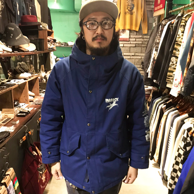 80's ARMY JKを参考にして製作した当店のオリジナルボディにPARADOX(HIROTTON)のグラフィックが、左胸、左袖、背中にプリントされたジャケットとなります。生成りでプリントしたので、ネイビーボディーとの相性がとてもよく渋いカラーリングに仕上がっております。