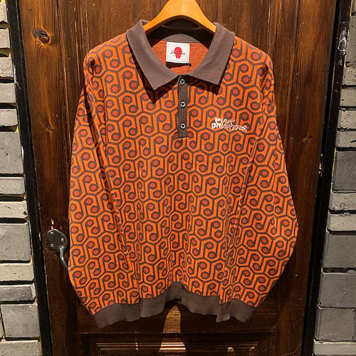なんだかホラーを感じる総柄長袖ポロシャツ。