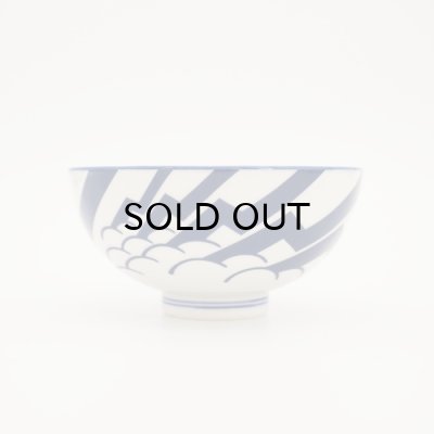 九谷焼と言えば手描きの超絶技巧をイメージしますが、KIZM氏のアートワークは手描きでは実現しきれないコンピューターグラフィックを駆使して精密かつ緻密なデザインを形にしております。雷と雲、染付のラインなど新旧のエッセンスが入り混じった商品です。内側にもグラフィックが入っています。