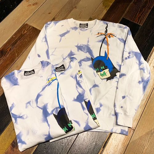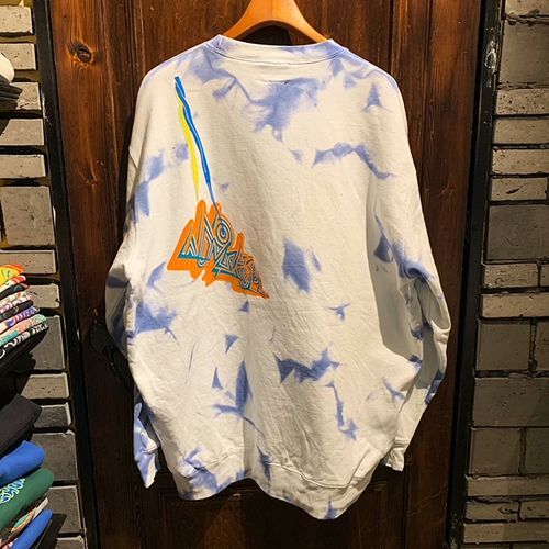 ホワイトボディにスカイブルーで染められたタイダイボディに、ZONZAIによる描き下ろしのグラフィックが乗ったユニークな一着です。