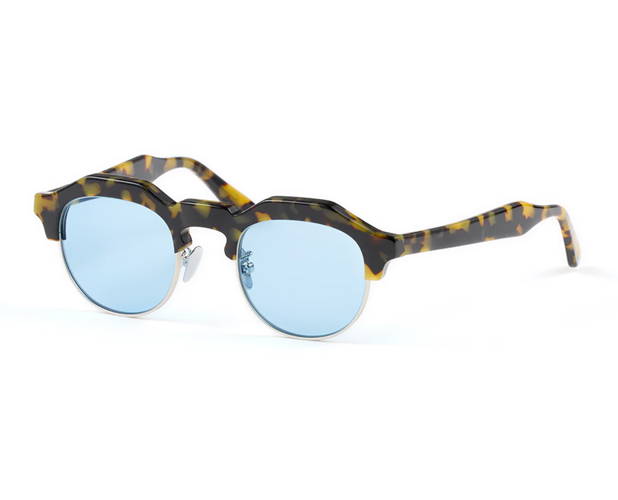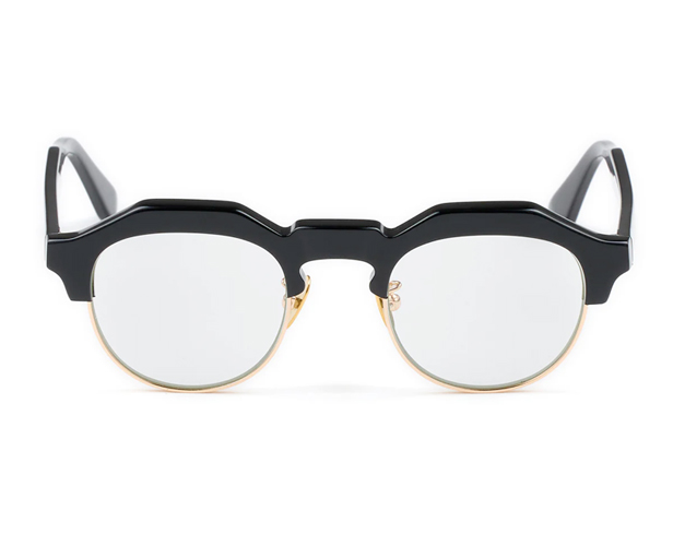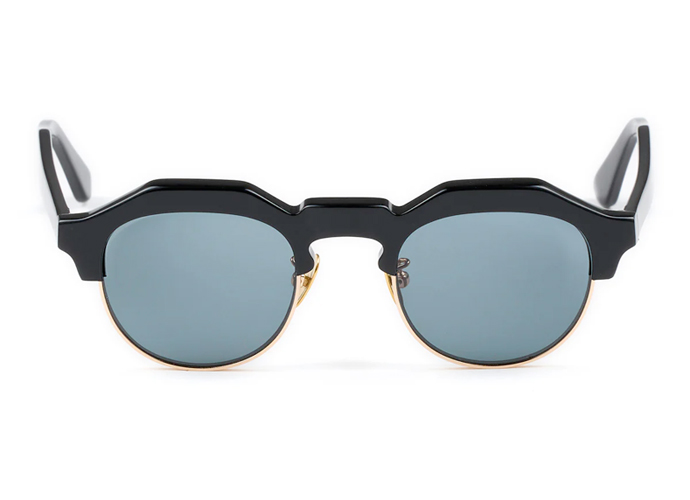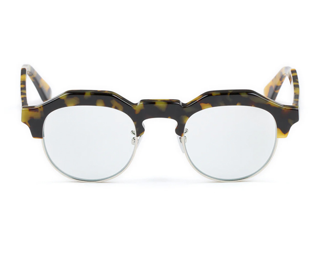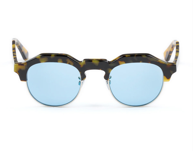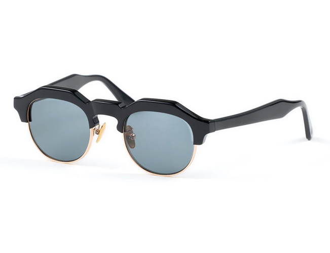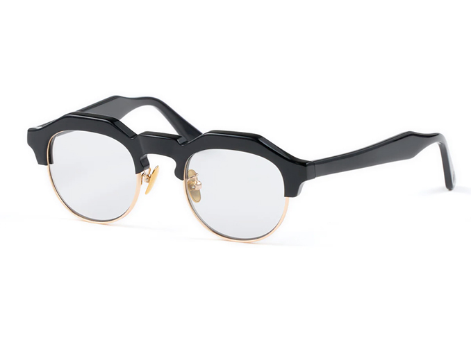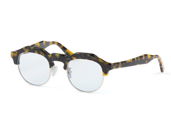 クラウンパント型のブローラインに、彫金を施したアンダーリムを配すことにより、武骨さの中に気品が見える仕上がりに。
