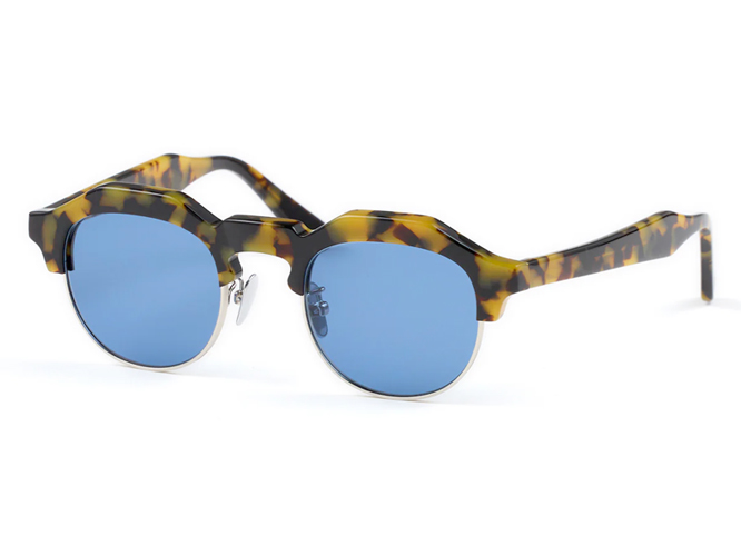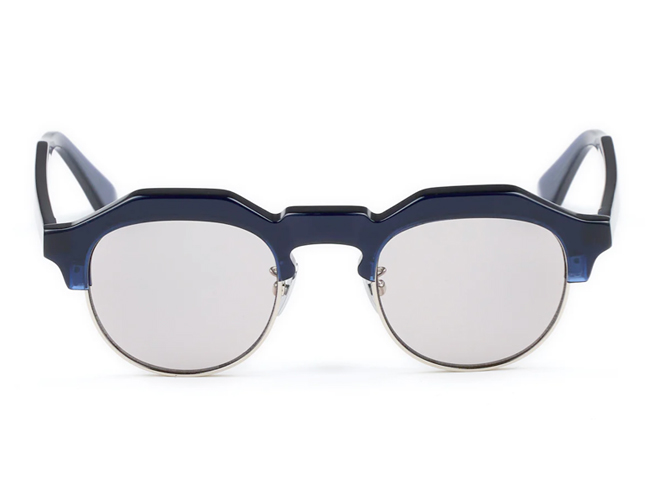 クラウンパント型のブローラインに、彫金を施したアンダーリムを配すことにより、武骨さの中に気品が見える仕上がりに。