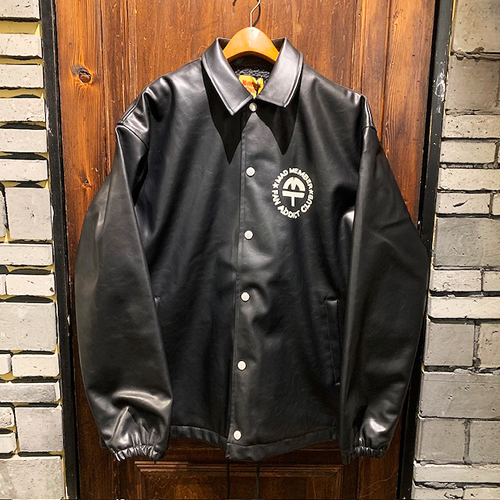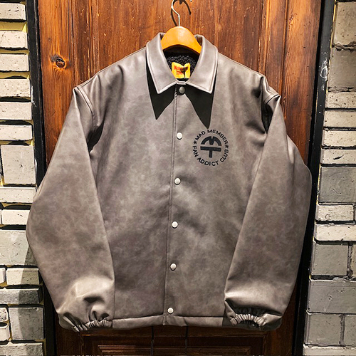 アンダーグラウンドな雰囲気漂うエコレザーを使用したコーチジャケット。