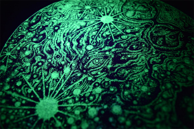 発光の強い蓄光インク採用。光から闇へ入ると発色致します。