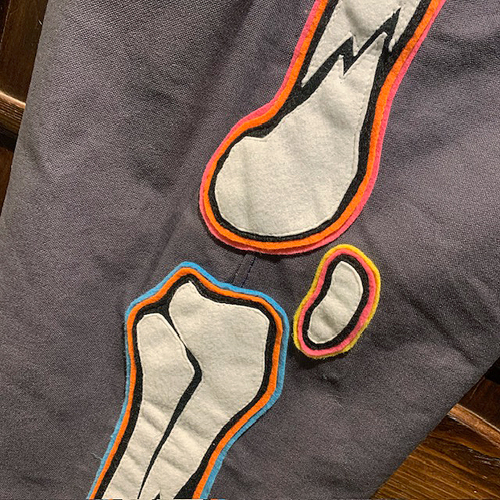 {NO MAD NUMSKULL} ORIGINAL PATTERN LONG PANTS / "FELT PATCH BONE" / GRAY