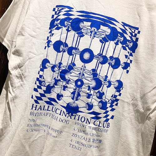 "HALLUCINATION CLUB" の広告Tシャツです。